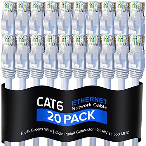 Maximm Cat 6 Ethernet Cable 10 Ft, 100% Pure Copper, Cat6 Cable (20 Pack) LAN Cable, Internet Cable, Patch Cable and Network Cable - UTP (White) 10 Feet