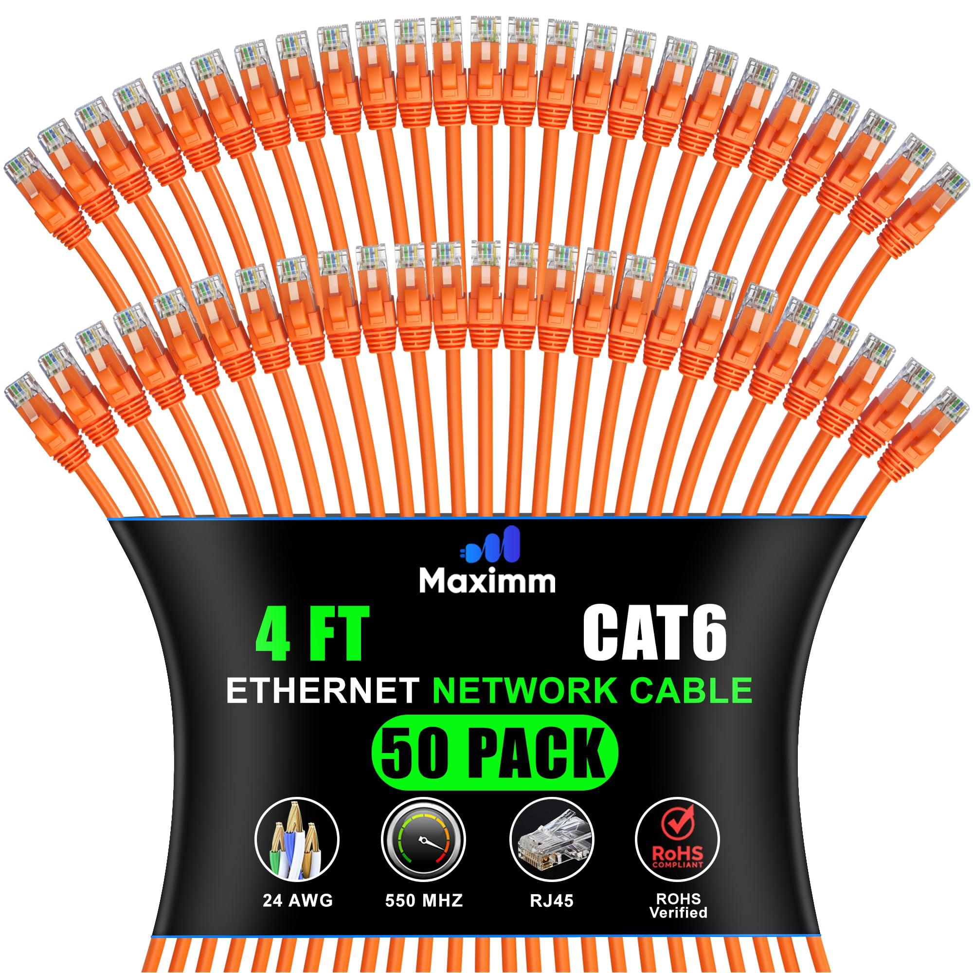 Maximm Cat 6 Ethernet Cable 4 Ft, (50-Pack) Cat6 Cable, LAN Internet and Network - UTP (Orange) 4 Feet