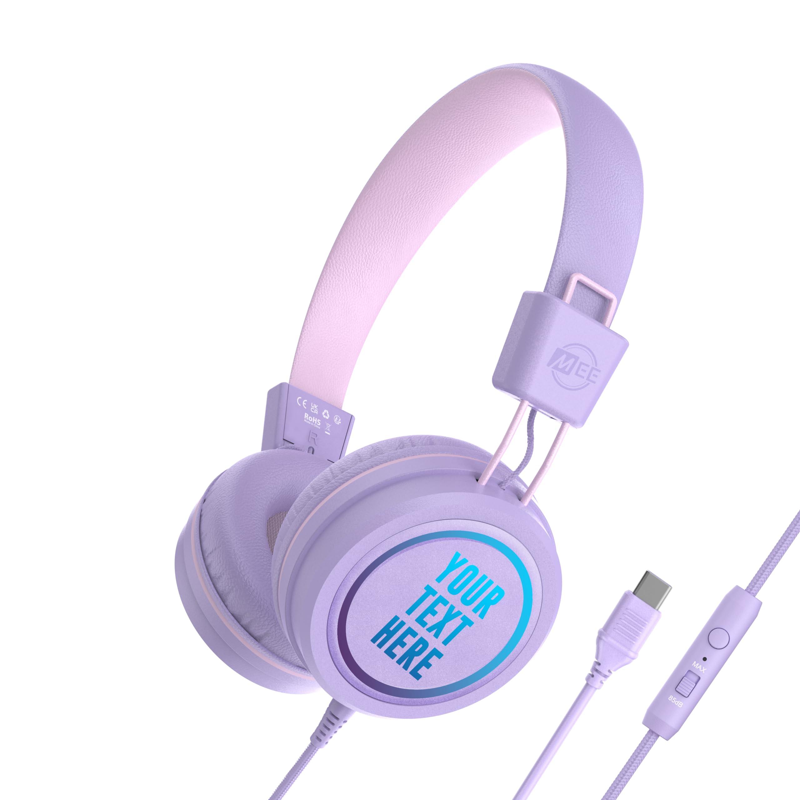 MEE audio KidJamz KJ55 Personalized USB-C Safe Listening Wired Headphones for Kids with Custom LED-Backlit Design, Volume Limiter, & Microphone for iPhone 15, iPad, & USB Type C Devices (Lavender)