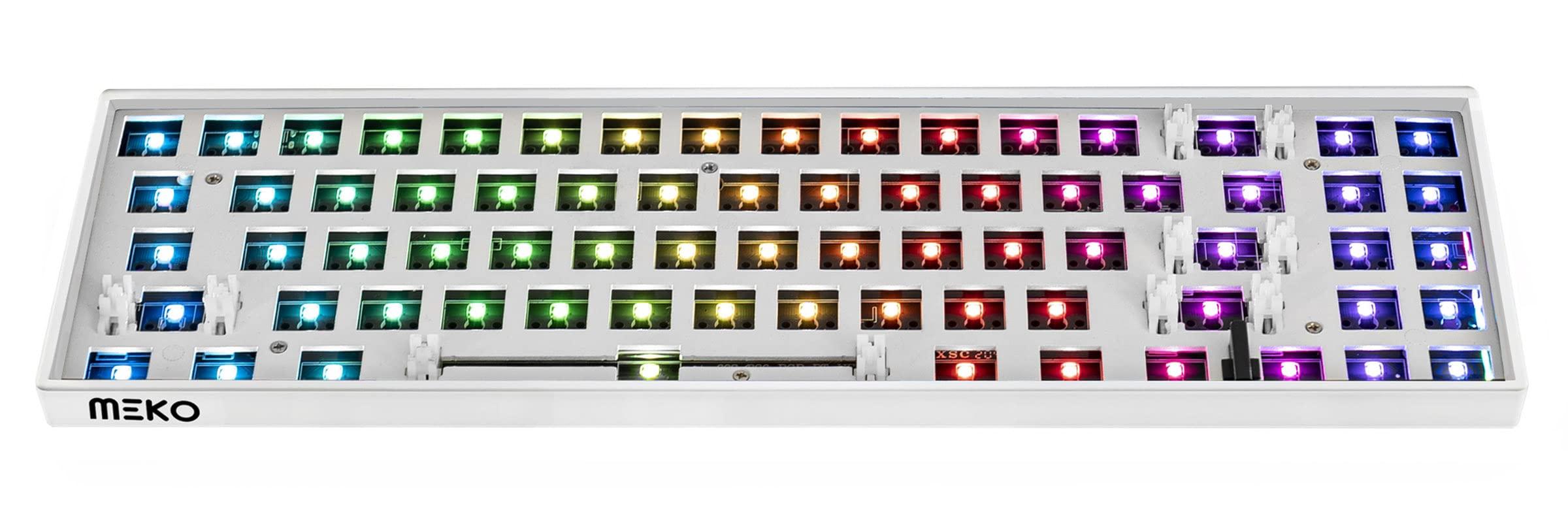 A feature-packed Barebones 65% at an affordable price, Meko's Push is great for users looking for a compact footprint with arrow keys. The Push features full hotswap functionality, Bluetooth connectivity, RGB Backlighting, Double Shot caps, and more packed into a stylish frame.