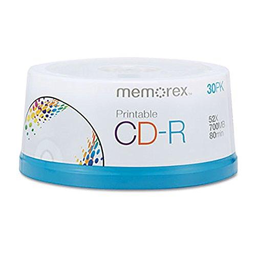 - Printable CD-R Discs, 700MB/80min, 52x, Spindle, White, 30/Pack