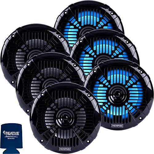 Memphis Audio LED Marine Speaker 6 Pack MXA602SLB 6.5" Marine Grade Coaxial Speakers, Black With Blue LED - 3 Pair - This bundle includes 3 pairs of Memphis Audio MXA602SLB MXA OEM Fit 6.5" Marine Grade Coaxial Speakers, Black With Blue LED - Pair, and a Creative Audio coozy.