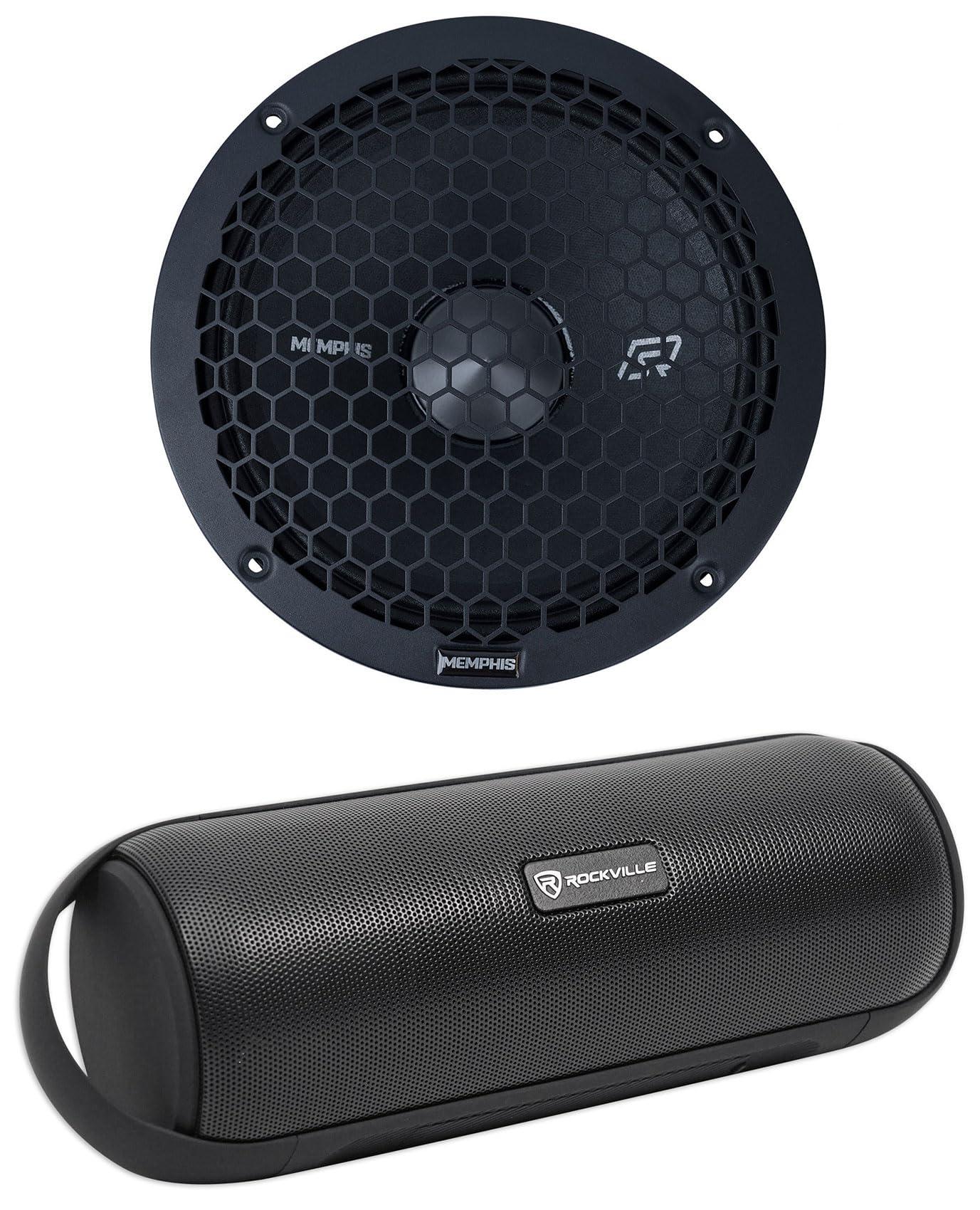 - Package Includes: (1) Memphis Audio SRXP10V2 SRX Pro 10" 500w 4 ohm Midrange Car Speaker w/LED Midbass. (1) Rockville RPB25 40w Portable/Outdoor Bluetooth Speaker w/USB+Aux+Wireless Link