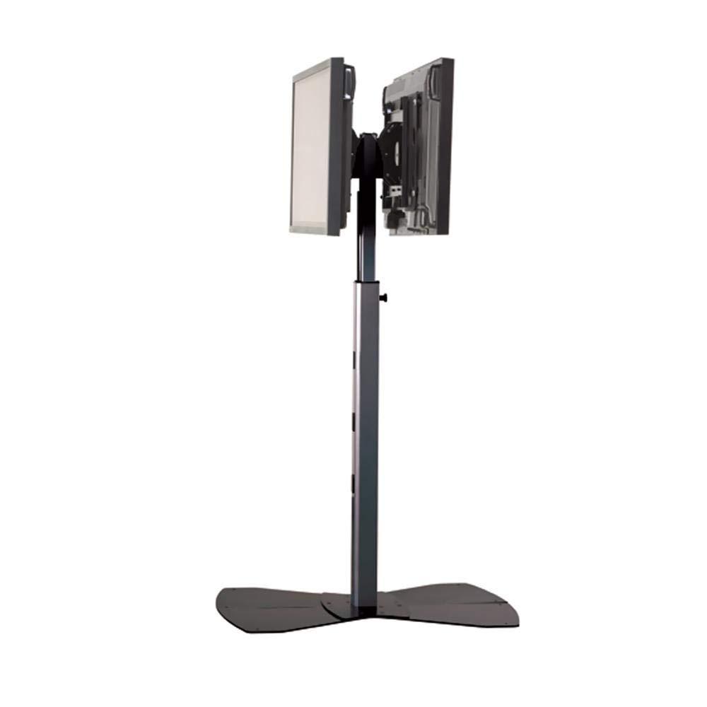 The PF2 AV stand supports two displays back-to-back and features telescoping height adjustment and integrated cable management. Ideal for digital signage and corporate presentations