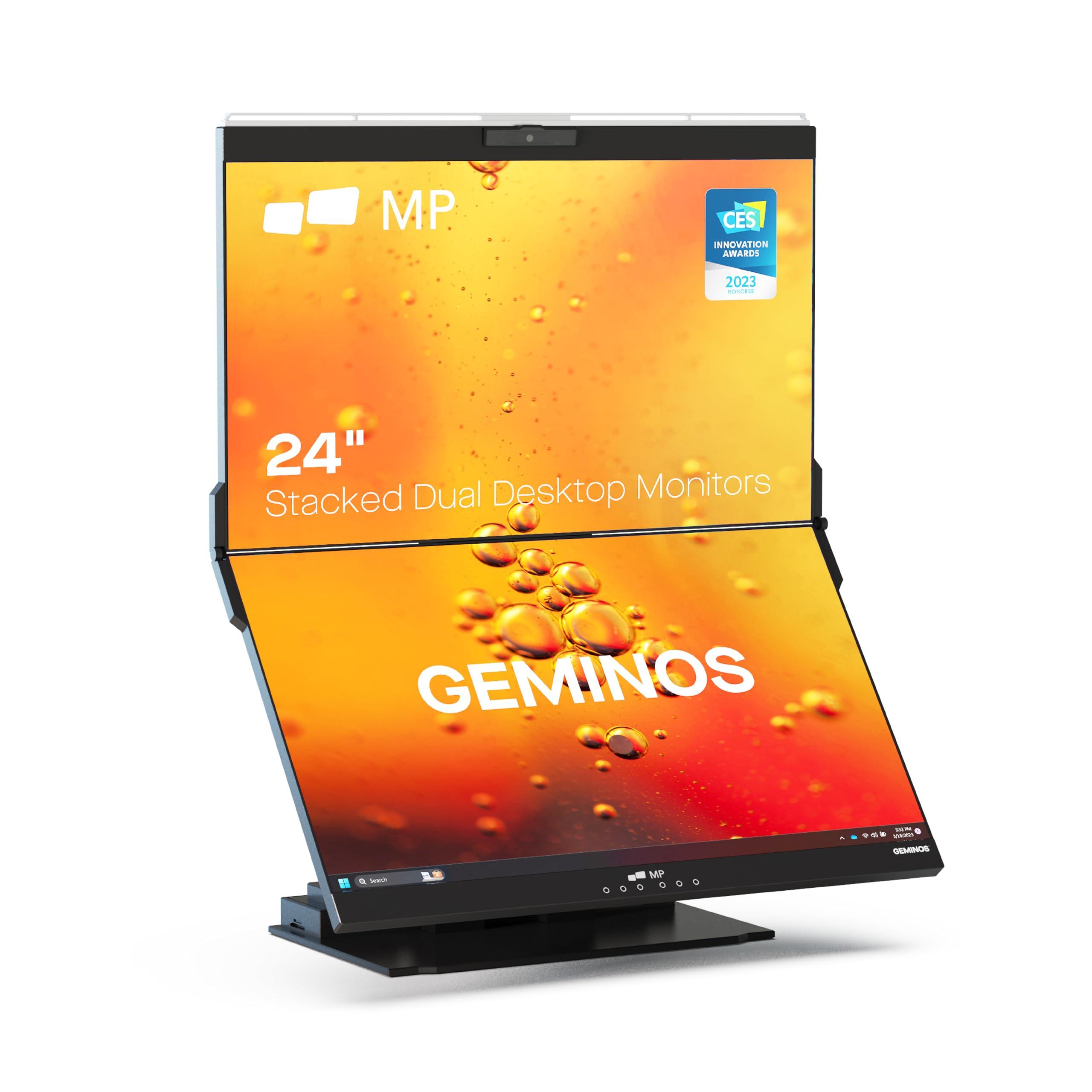 - Stacked Monitors: Geminos offers two 24 IPS monitors that are stacked from top to bottom, reducing the range of motion required for the eyes and neck; Improve concentration and productivity by minimizing the gap between screens