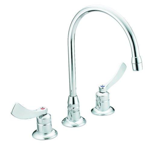 Moen Commercials line of new M-DURA heavy-duty, solid brass kitchen faucets are tested tough with vandal-resistant features to help reduce your facilitys maintenance costs and stand up to constant use. Not only is M-DURA more pleasing to the eye than typical industrial faucets, they are built to last. With robust features such as Moens heavy-duty Duralast ceramic disc cartridge, encased in a brass shell; with a brass adjustable temperature limit stop to ensure safety, prevent handle travel, and to provide complete shut off every time. M-DURA heavy-duty cast brass kitchen faucets are now available in single-handle deck mount options , multi-purpose gooseneck versions, and an exclusive single-handle wall mount for unmatched convenience; all available with a reduced flow rate of 1.5gpm which can help you earn LEED points and comply with other mandatory and voluntary water conservation legislation standards, without sacrificing performance. Moen Commercial products are built to provide years of reliable service all backed by a best-in- class five-year limited warranty.
