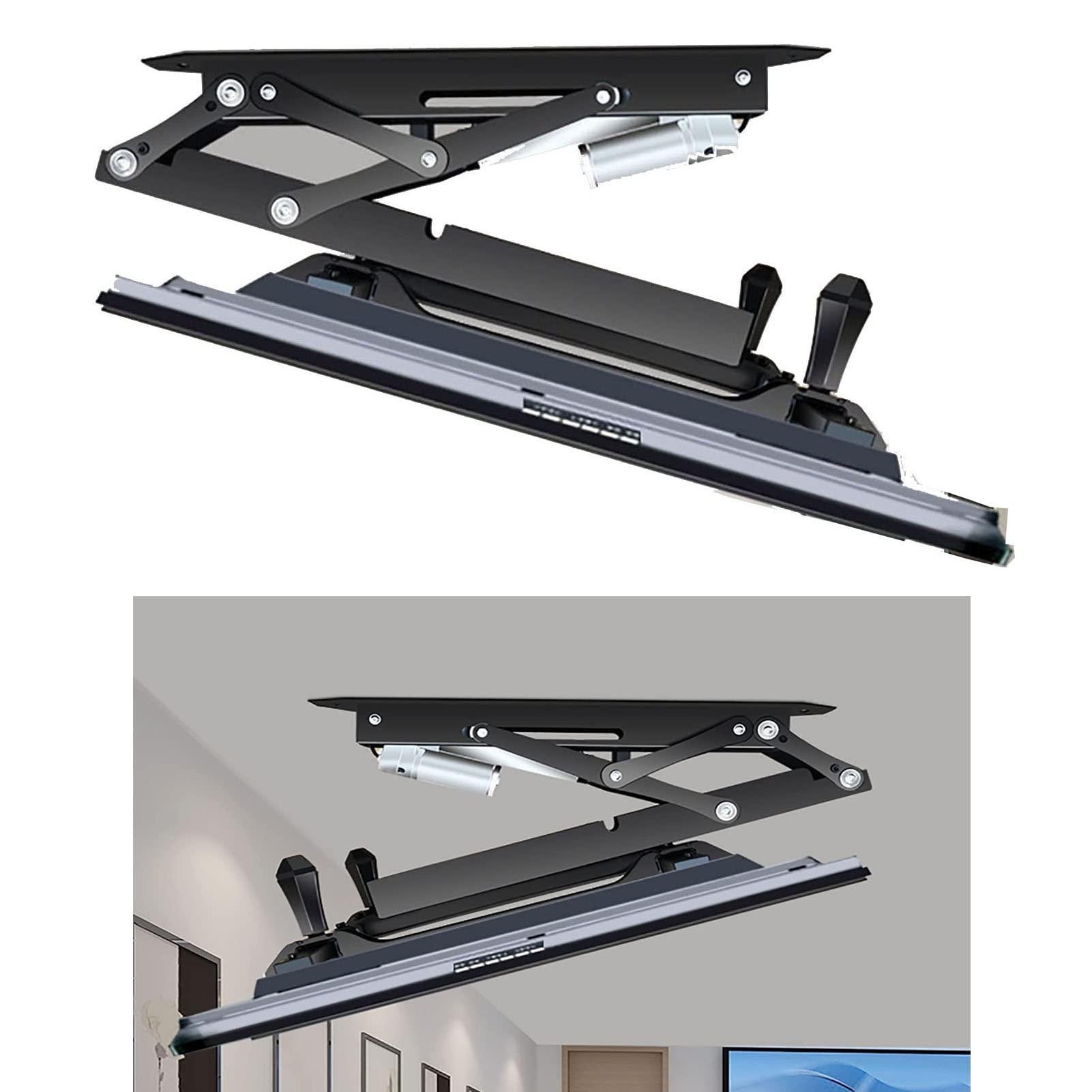 - Safe and Stable: Motorized TV lift Driven by DC motor turbine vortex,Voltage: 110-240V, whether in public places or at home, you can rest assured to use. High-quality thickened cold-rolled steel, matte sprayed surface, not easy to rust, and smooth lifting. Can be recessed into the ceiling, need to reserve the installation location.
