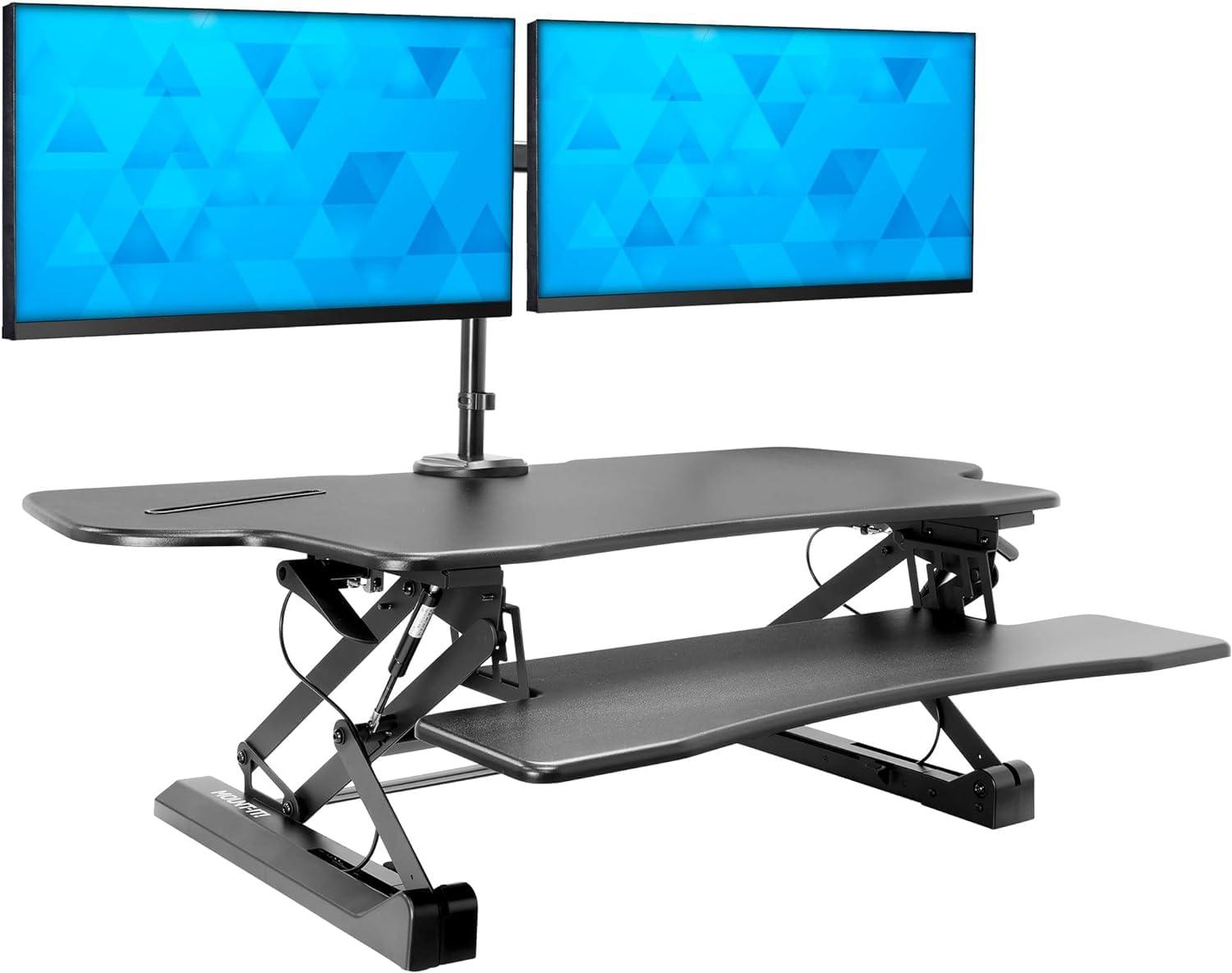 - Expansive Dual Monitor Workspace: The Mount-It! Standing Desk Converter offers a generous 47" x 23" surface, ideal for accommodating two monitors up to 32" each. This desktop standing desk includes a built-in device channel to securely hold your tablet or smartphone, ensuring everything you need for a productive day is within easy reach.
