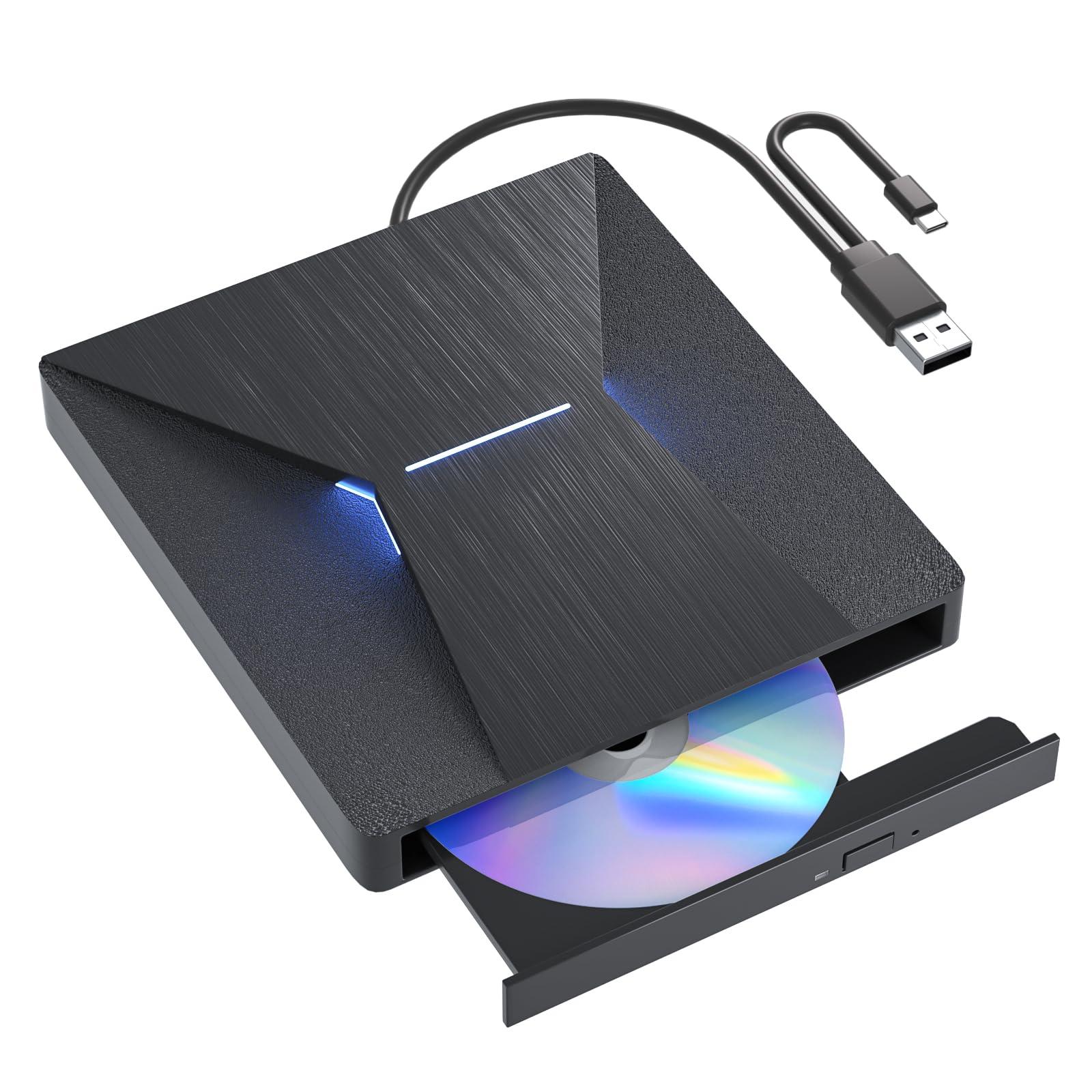 - BD CD DVD Drive Burner--- This external bluray drive can not only read to Bluray CD DVD disc but also write them.Its ability to read and write bluray CD DVD discs with fast speed ensures that large files will be handled with ease and efficiency.It has a larger storage capacity(50G)which make it burn files with high performance. Bluray reading and writting speeds are up to 6x, DVDs up to 8x, and CDs up to 24x. Supports 8.5G 4.7G 700M CD DVD burning capabilities. Advanced high speed 3.0 interface,up to a maximum of 5Gbps(6X faster than 2.0(480Mbps)) & Type-C interface has strong error correction ability, impact resistance, low noise and low power consumption.