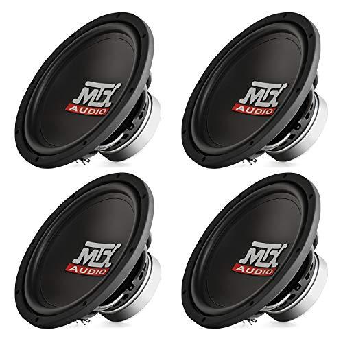 The classic Terminator car subwoofer bangs out bass in rigs all over the world. Its economical price made it our most popular entry level sub over the last several years. And the Terminator still outperforms any sub in its class. This 4-pack includes MTX TN10 04 10\" single voice coil, 4 Ohm, 150 watt car subwoofers that are economically priced but not short on performance. The terminator subwoofer is loaded with MTX engineering technology including Spider Plateau Venting that ensures trouble free performance and an Assymetrical Linear Drive System that limits distortion ensuring unbeatable performance. If you are looking for a great subwoofer that won\'t break your bank look no further. The Terminator sub is still one badass bass pounder.