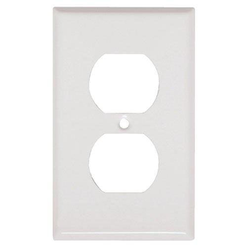 White, 1 gang, 1 duplex opening, steel wall plate, standard size, UL listed, Bulk Cello wrap.