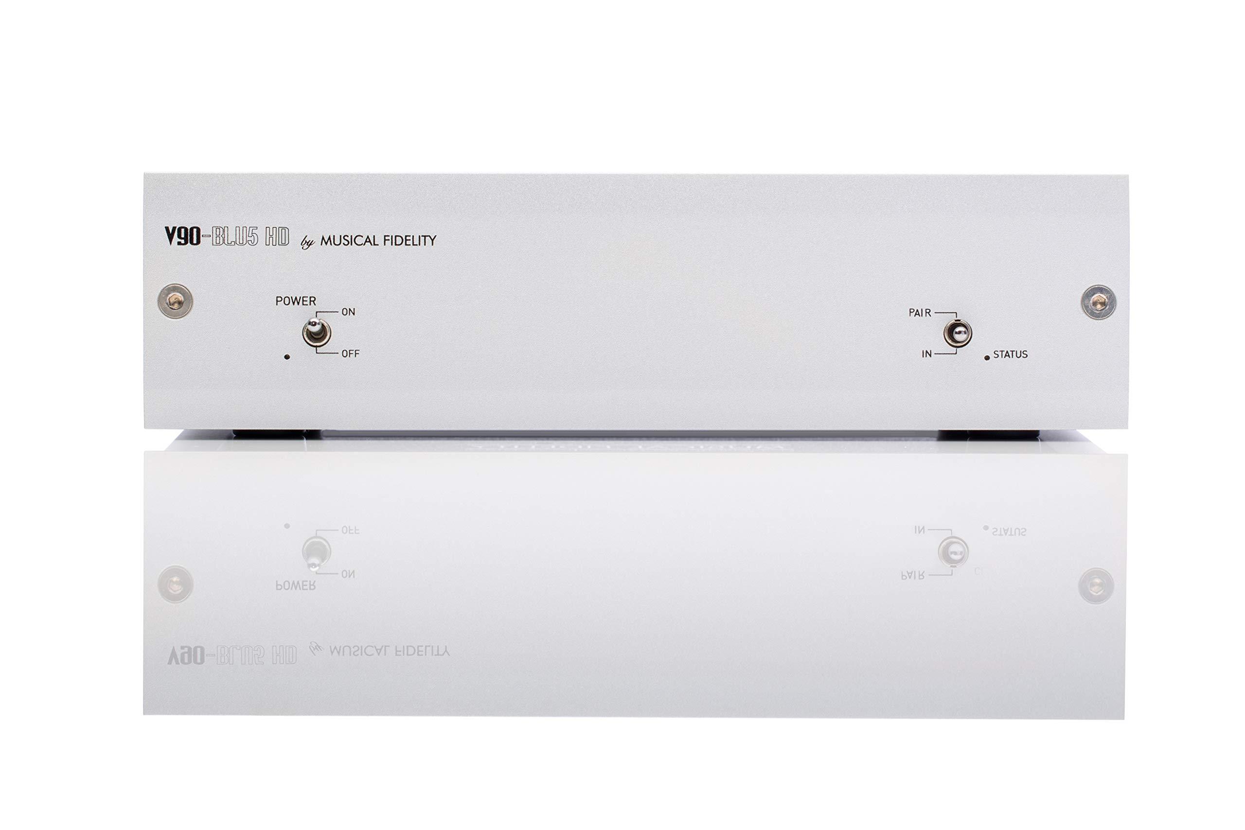 V90-BLU5 HD - Specifications Bluetooth Performance CSR8670 Bluetooth Chip Bluetooth Radio Specification v5.0 SBC, Qualcomm aptX, aptX HD aptX HD max. 24bit/96kHz; 576kbit/s Carrier frequency 2.402 to 2.480 GHz Transmission power +10dBm (max) Class 5 up to 240M range Class 2 up to 30M range DAC Section Burr-Brown PCM 1781D 24/192 DAC Burr-Brown SRC4392 Re-Clocking and Up-Sampling Chip THD(+ noise): <0.01% (A wtd) Frequency Response: +0, 0.1dB Seperation: -78dB Signal / Noise ratio: -80dB (A wtd) Inputs 1x line level RCA 1x RCA coaxial up to SPDIF 24bit/192kHz 1x TOSLINK optical up to 24bit/96kHz Outputs 1x line level RCA 1x RCA coaxial SPDIF up to 24bit/192kHz 1x TOSLINK optical up to 24bit/96kHz General Dimensions - WxHxD (mm): 170 x 47 x 117 Weight (unpacked / packed): 590g / 1.05 kg Supplied Accessories 1x 12v 500mA DC power supply 1x Bluetooth Antenna User Manual