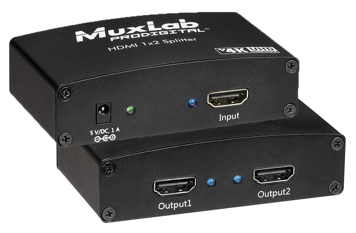 MuxLab 1x2 HDMI Splitter 1 in 2 Out, Supports 3D 4K@30HZ Full HD 1080P @ 60Hz for Xbox PS4 PS3 Fire Stick Roku Blu-Ray Player Apple TV HDTV (1 Source to 2 Displays, for Dual Duplicate Monitors)