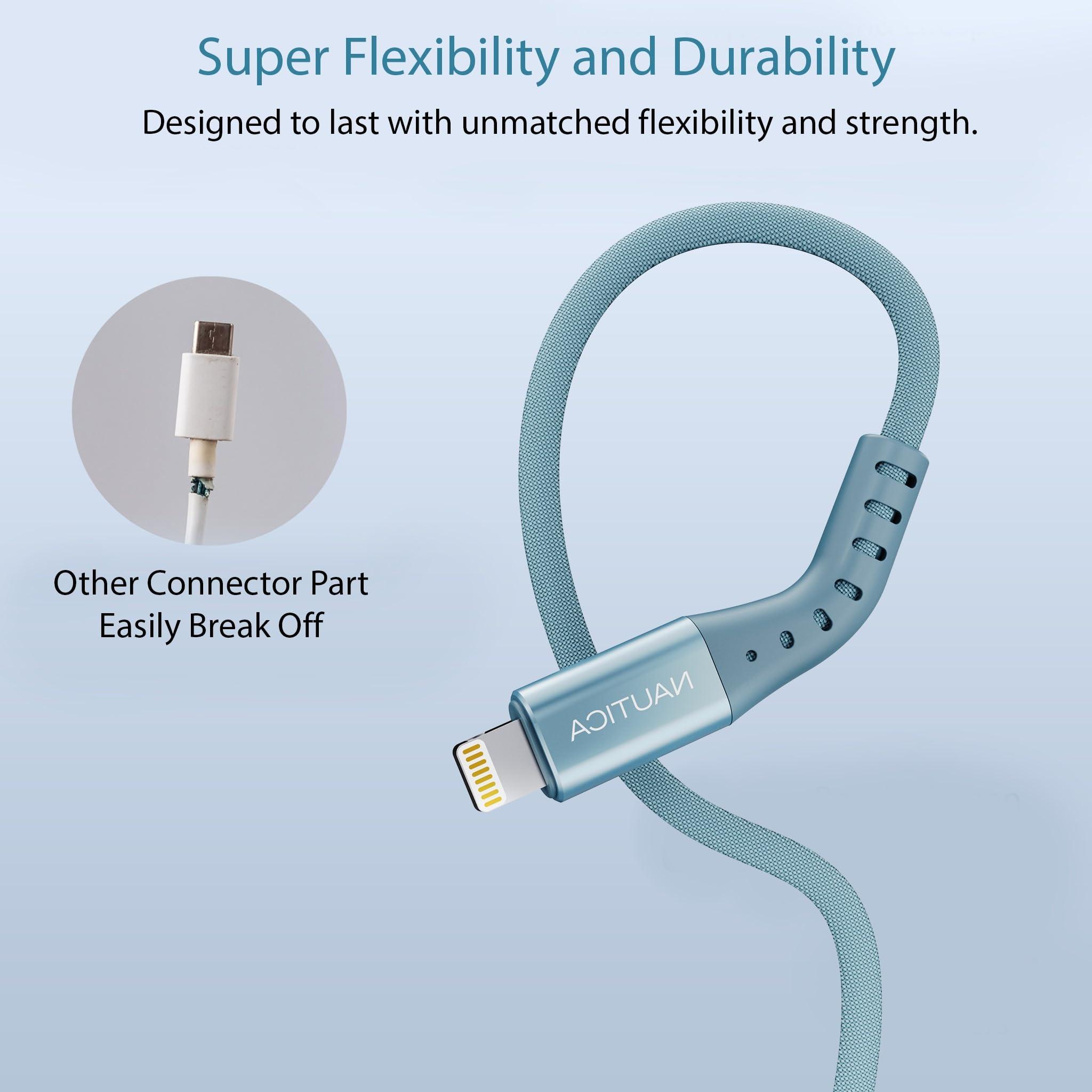 Nautica Lightning to USB-A Cable, Fast Charge Support, 12W Output Power, Durable Braided Cable 4 ft, Compatible with iPhone, iPad, iPod (Blue)