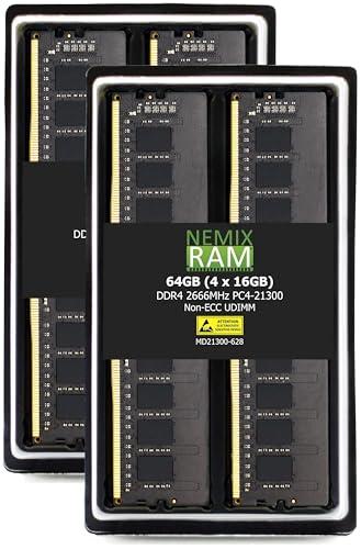 NEMIX RAM NEMIX RAM 64GB (4X16GB) DDR4 2666MHZ PC4-21300 2Rx8 1.2V CL19 288-PIN Non-ECC Unbuffered UDIMM Desktop PC Memory KIT Compatible with Dell SNPTP9W1C/16G AA335286