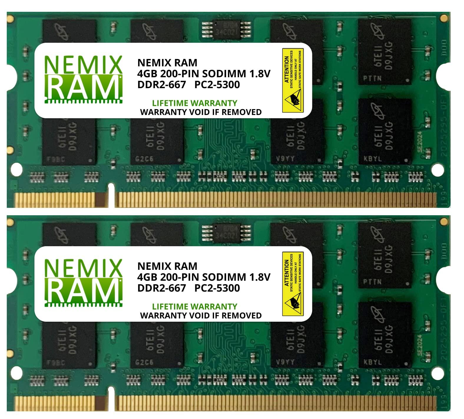 NEMIX RAM 8GB (2x4GB) DDR2-667MHz PC2-5300 2Rx8 200-Pin 1.8V SODIMM Memory for Laptop, Notebook