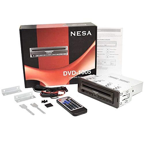 One din in-dash DVD player with USB with Blue LED buttons for illumination and a Vertical mounting disc slot-in mechanism