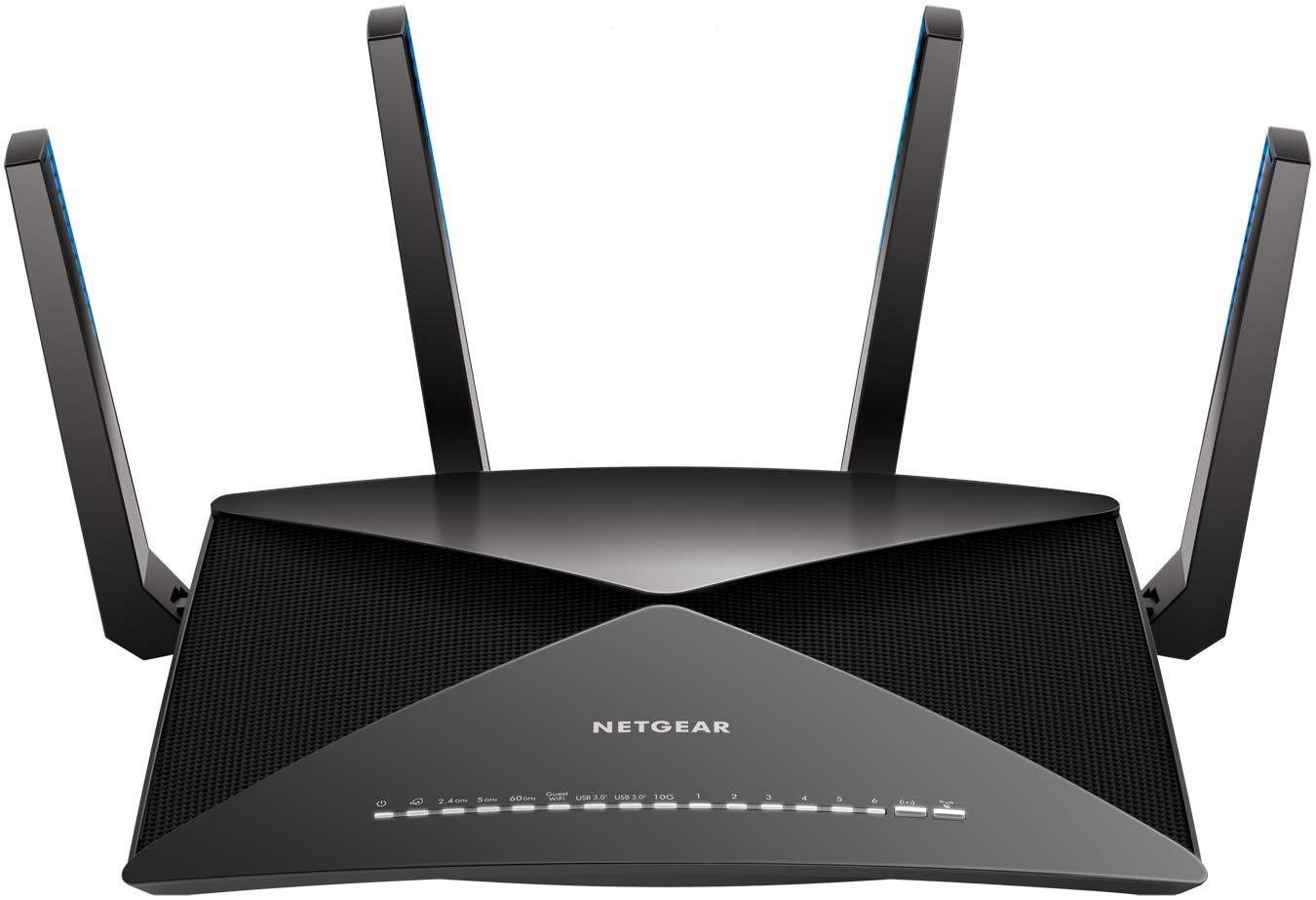 The Nighthawk X10 AD7200 Smart WiFi Router is industrys fastest router for media streaming with Plex media server. The X10 delivers 802.11ac/ad WiFi for ultra-smooth 4K streaming, VR gaming and instant downloads. With a powerful 1.7GHz Quad Core Processor and Quad-Stream architecture, you can enjoy combined wireless speeds of up to 7.2 Gbps. MU-MIMO supports simultaneous streaming, while 160MHz doubles WiFi speeds to mobile devices. Four patent pending external active antennas amplify WiFi signals to maximize range and throughput. 6 months of unlimited backup to Amazon Drive secures precious data from USB storage connected to the X10 router.