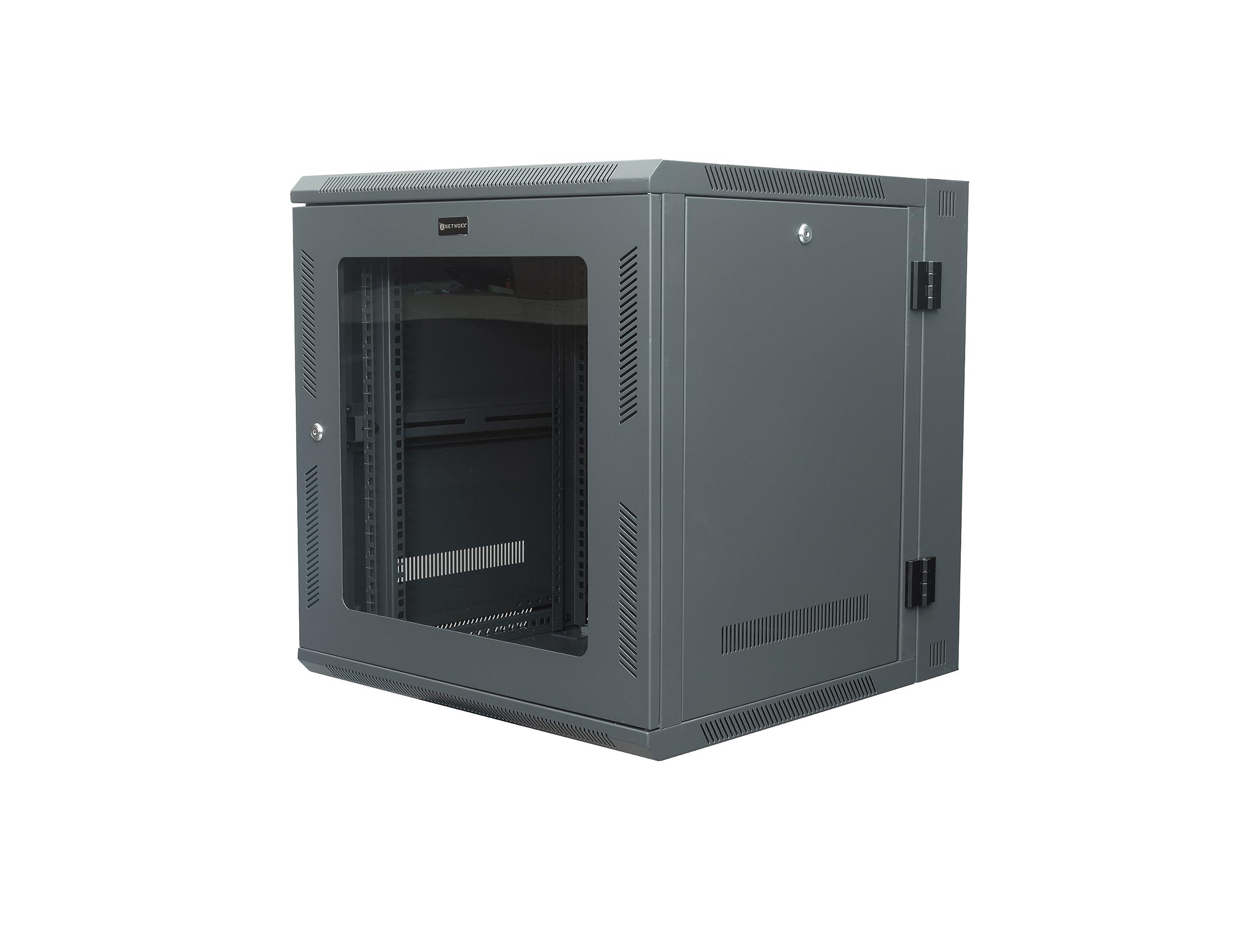 This cabinet comes equipped with some of the most requested features. Starting with the basics, this Wall Mount Cabinet is constructed with high quality SPCC Cold-Rolled Steel Panels. All Networx Wall Mount Cabinets come with removable side panels, which include vents to keep equipment cool, to allow for quick access to sensitive networking equipment. All front panels swing out for easy access to loaded network equipment and include a window of 5mm acrylic. Included with this high quality Wall Mount Cabinet is a single 120mm fan for ideal air movement to keep network equipment cool and running at peak performance. Adjustable rails allow for full customization to allow a variety of networking equipment to fit securely. The rails are punched to allow for the installation of M6 Cage Nuts. Both Side Panels and Front Door are lockable with the included set of keys. Top/Bottom/Rear knockouts for cable entry and exit. All racks are designed to house 19" rack mountable equipment.