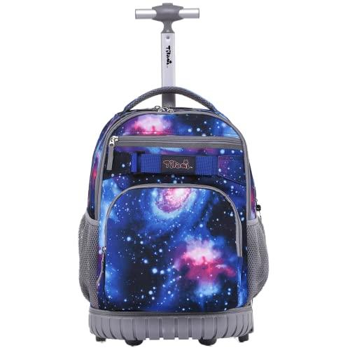 NEW TILAMI 18 Inch Rolling Backpack for Kids, Boys Wheeled Laptop Rolling Backpack for Girls Travel School Student Trip Using, Deep Space