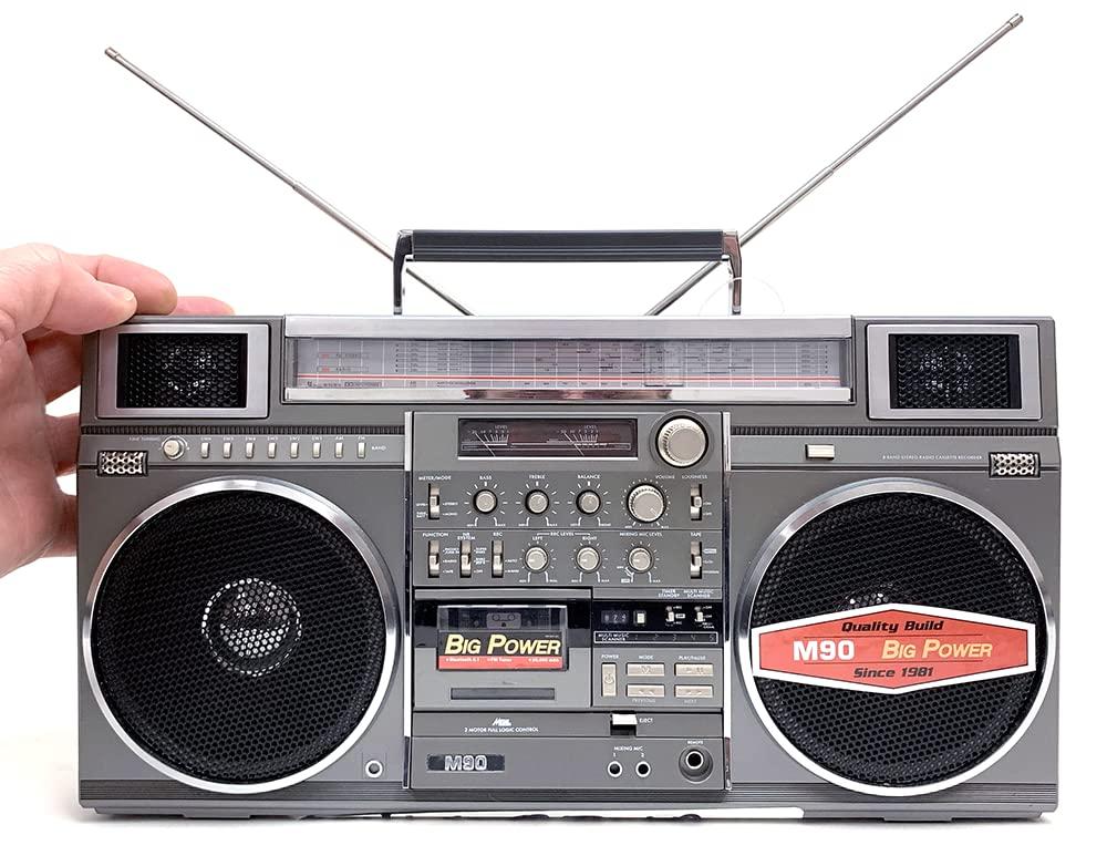 - MINI BOOMBOX, BIG SOUND: Highly accurate miniturized replica of the M90 "King of Boomboxes" that measures: 11 x 3 x 6. Two 3 midrange speakers deliver 30 watts of Big Power. You can even pair 2 M90 MINI Blasters for Immersive Stereo Sound!