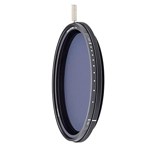 The NiSi 40.5mm ND-VARIO Pro Nano 1.5-5stops Enhanced Variable ND is a variable neutral density filter providing an exposure reduction of 1.5 to 5 stops. The degree of density is easily controlled by rotating the silver knob. The transition of density occurs smoothly which allows the photographer or videographer to adjust exposure length to the exact amount required for a given scene. For those using this filter with cinema or video cameras, combined adjustments of aperture and this filter allow fine adjustments of the depth of field while retaining the designated frame rate.