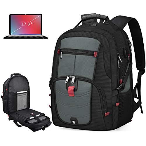 - LARGE CAPACITY & MULTIPLE POCKETS: Dimensions: 14.1*8.3*18.5 Inches (L*W*H); Capacity: 45 L; Two main padded compartments with dual zipper fit for 15.6, 17 and up to 17.3 inch laptop. (Since the laptops' appearance of different brands is different, this backpack is suitable for most 17.3'' laptops, but if laptops' form is too large, it may not be suitable.) More than fifteen functional pockets ensure you to keep your personal belongings well-organized and get them easily whenever you need