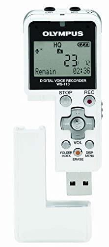 With 256 MB of internal flash memory, the Olympus WS-110 WMA Digital Voice Recorder lets users record up to 69 hours of digital audio in HQ, SP, and LP recording modes. The WS-110 records audio as WMA files, which makes transferring audio files to a PC a snap--the Windows Media Audio (WMA) files work seamlessly with any Widows based PC. This unit lets you continuously record for 21 hours with one AAA battery, and you can conserve memory and battery power with the variable control voice actuator that records only when sound is sensed. A voice filter eliminates high and low frequencies during playback to enhance human voices. You can also use the WS-110 as a mass USB storage device to hold any type of digital file. The WS-110 keeps files organized by letting users record to five different folders that each hold 200 files. When it's time to transfer files to a PC, the WS-110's USB direct design lets you plug the recorder right into your computer for easy, full-speed transfers using USB 2.0 connectivity. This digital recorder is compatible with Windows ME, 2000 Professional, XP Professional, XP Home Edition, and Vista operating systems.
