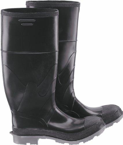 Polyblend men's plain toe knee boot with cleated outsole. Designed for use where moderate chemical resistance is required. Injected molded seamless construction. Reinforced steel shank for added safety and comfort. Replaceable cushion insoles. Scientifically formulated polyurethane and PVC. Non-slip, self cleaning soles. Cut off band for height adjustment. All are excellent for use in: lawn care, poultry and food processing, mining, breweries, oil rigs, oil refineries and chemical plants. Steel shank: provides arch protection and support. Measures 12" length by 4-5/8" width by 16-1/2" height.