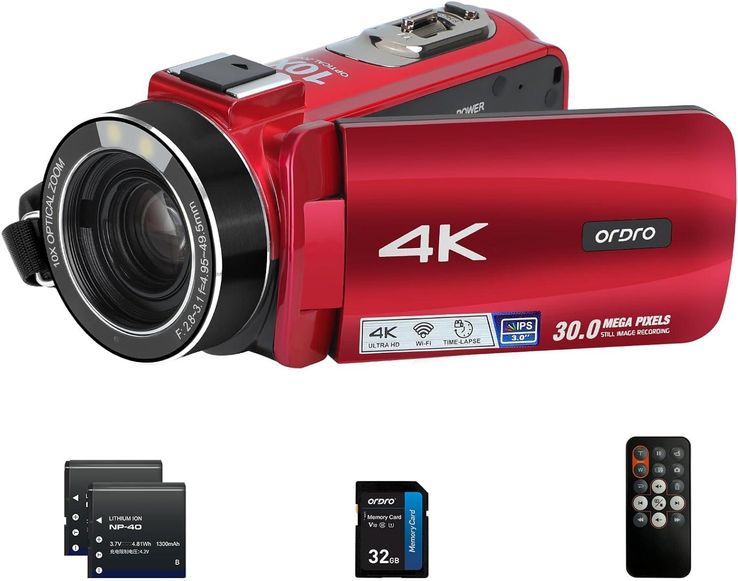 - Multi-functional Camcorder: This 4k camcorder video camera features a built-in microphone for clear audio capture, supports recording while charging, has LED lights, a pause function, time-lapse, face capture, webcam capability, USB and HDMI outputs, and is compatible with external microphonesNot included for enhanced audio quality. It also includes a remote control and supports a maximum 256GB Memory card.