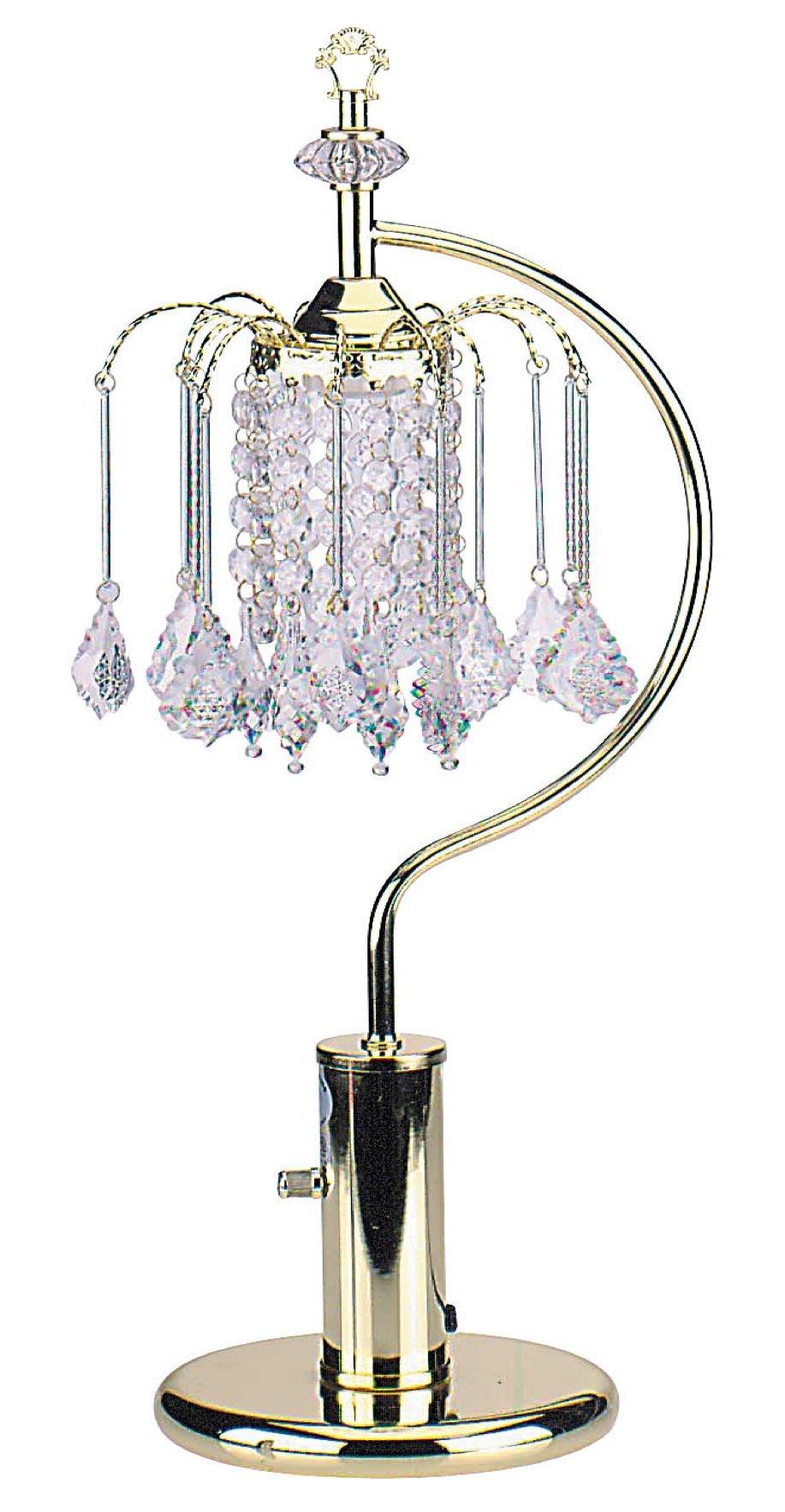 - Gold table lamp accented with crystal inspired chandelier style lights