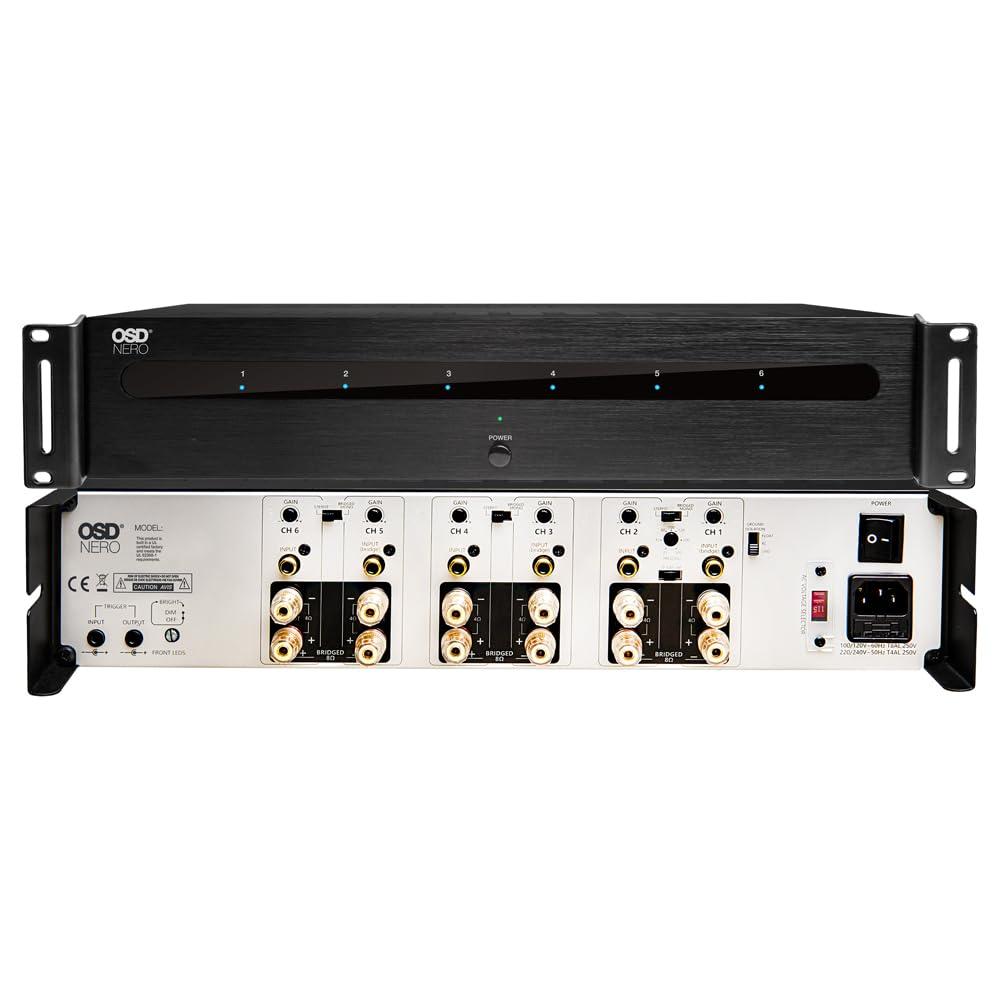 - High-Power 6-Channel Amplifier: Class D, fan-cooled, delivering 6x175W at 4 ohms and 100W at 8 ohms, ideal for expansive home theater or multi-room audio systems.