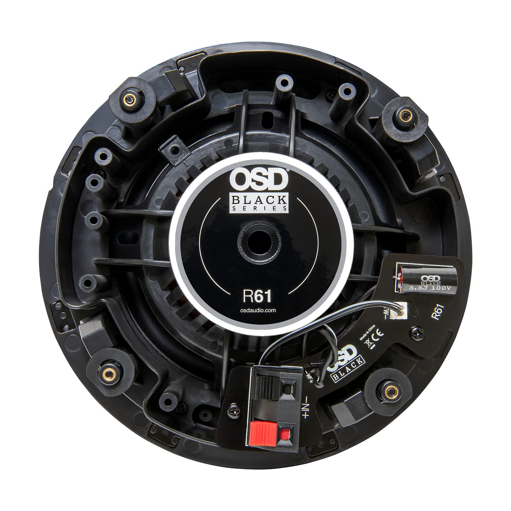 "While in-ceiling speakers may be high and above and mostly out of sight, the internal components can be the difference between immersive, rich sound for distributed audio and home theater versus standard background speakers. OSD Black Series in-ceiling speakers include the highest-grade components for optimal performance in a wide range of applications. Rigid polypropylene woofers for deep, rich bass and silk dome tweeters that fill in the critical high notes. Whether you are planning a whole house audio system or a full-blown home theater, youll appreciate the sound and sleek appearance of OSD Black Series speakers, ensuring your audio experience is everything you expected and more. Specifications: Speaker Type: 6.5" In-Ceiling Speaker Woofer: 6.5" Polypropylene Butyl Rubber Tweeter: 1/2" Silk Soft Dome Pivoty 6dB Crossover Frequency Response: 60Hz - 20kHz Power: 100W Sensitivity: 86dB Impedance: 8 Ohm Diameter & Depth: 9.3" x 3.93" Cutout Diameter: 7.75" Selling Unit: Pair"