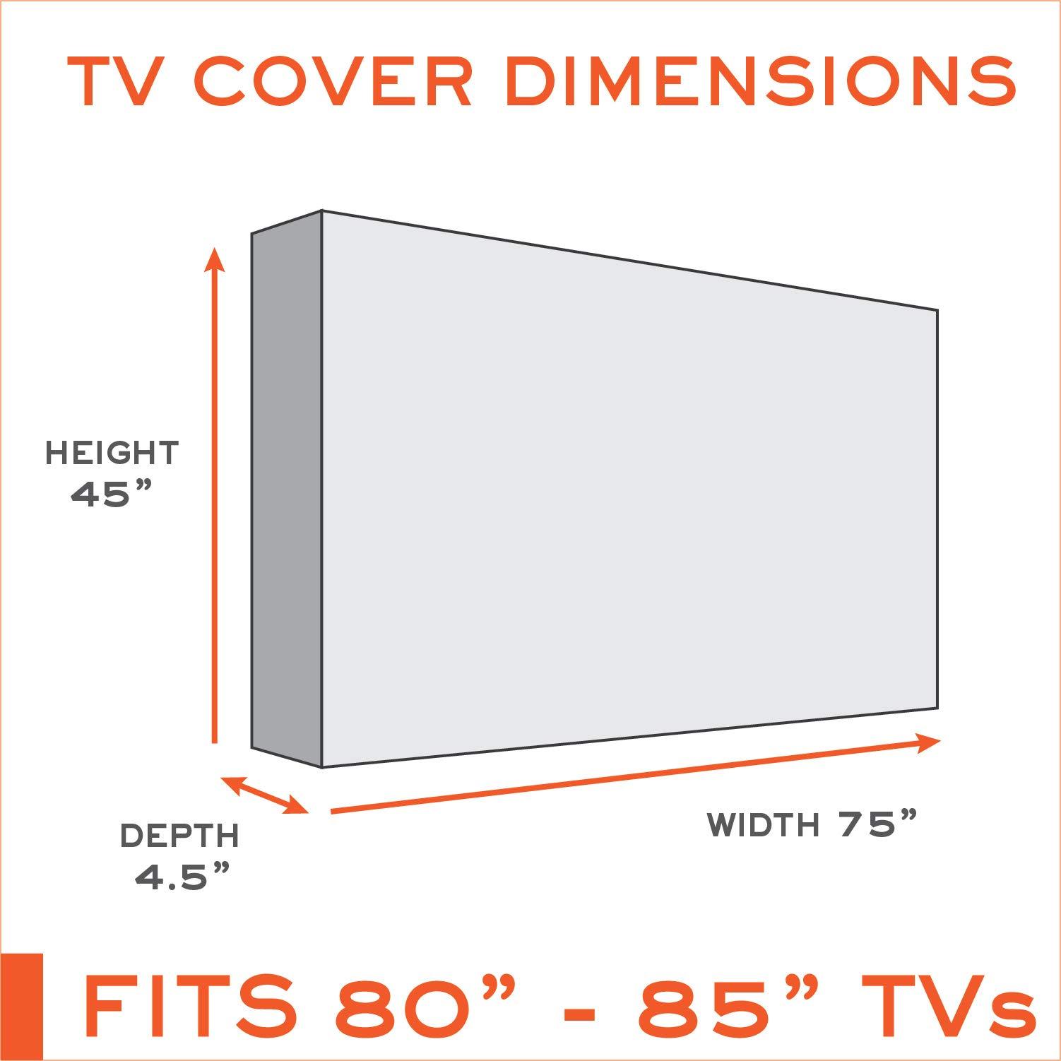 - DIMENSIONS OF 80-85 TV COVER: W 75" x H 45" x D 4.5". Please measure your TV before purchase and choose the correct TV Cover size for your TV from the size variations.