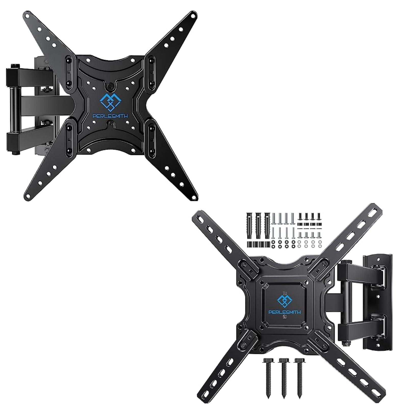 - PSMFK1: Full Motion for Customized Viewing Angle - The articulating TV mount allows +/-90swivel (max. swivel angle depends on TV size) to provide full-motion adjustment capacity for ideal viewing. You can tilt angle ranging from +5to -15to reduce glare from lights and extends up 18.3 to get more comforts from any seat in the room, and +/-3level adjust for maximum viewing flexibility, no more neck or back pain !