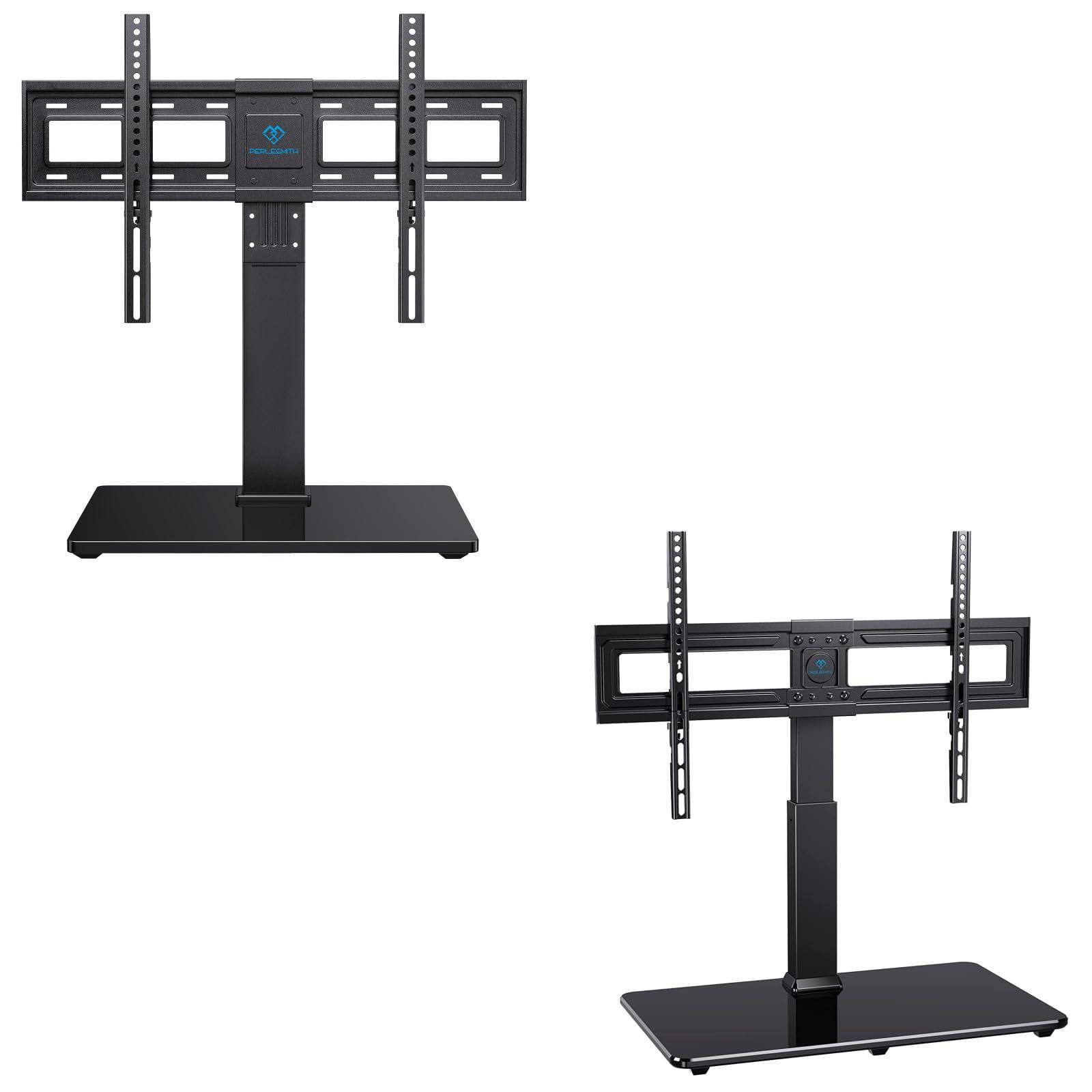 - PSTVS02-Universal DesignUniversal TV stand fits most 37"-75" TVs(including 37'' 39'' 40'' 42'' 43'' 49'' 50'' 55'' 60'' 65'' 70'' 75"), VESA(mounting holes pattern): 200X100-600X400mm(8"x4"-24"x16"). Our table top TV stand is compatible with Sony/Samsung/Vizio/Insignia/TCL/LG TVs in bedroom,school,office and so on. Solid steel pillar provides stable support for your TV, well made and good looking.