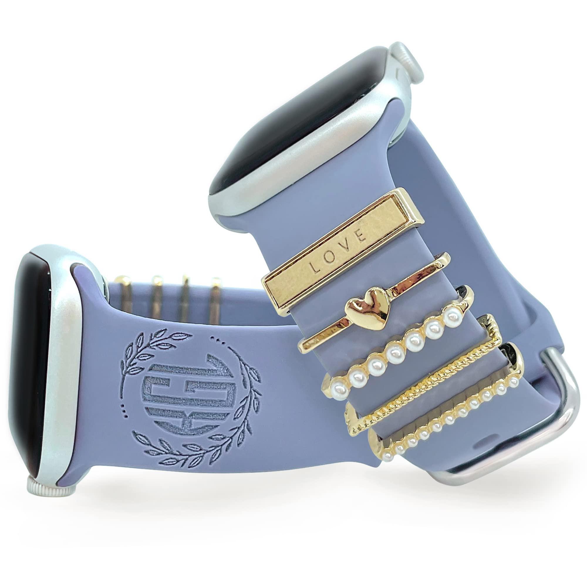 - Custom Process: Select band size, band color and charms style, Click "Customize & add to cart", enter the monogram you want to engrave on the strap, choose monogram style.
