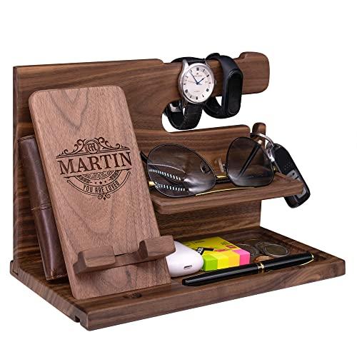 - - VERSATILE ORGANIZER: Our desk caddy boasts numerous compartments, ideal for neatly stowing essentials like phones, wallets, glasses, watches, keys, and coins. Plus, it features a built-in charging cable slot, efficiently charging your devices while keeping your daily must-haves in one place. This multi-functional men's accessory organizer is suitable for nightstands, office desks, or hallways, providing both practicality and aesthetic appeal. Elevate your organization and decor with this versa