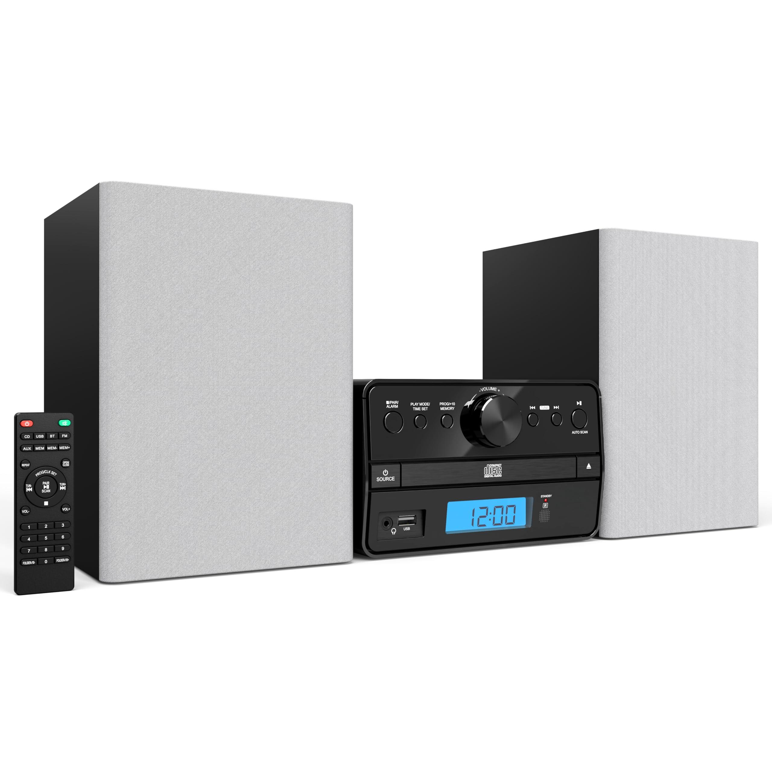 BLUETOOTH STEREO SYSTEM - our shelf stereo system for home is great to enjoy music in your office, bedroom, living area, or kitchen. Connect to your smartphone, tablet or other devices via Bluetooth or the Aux port to listen to your music or videos.