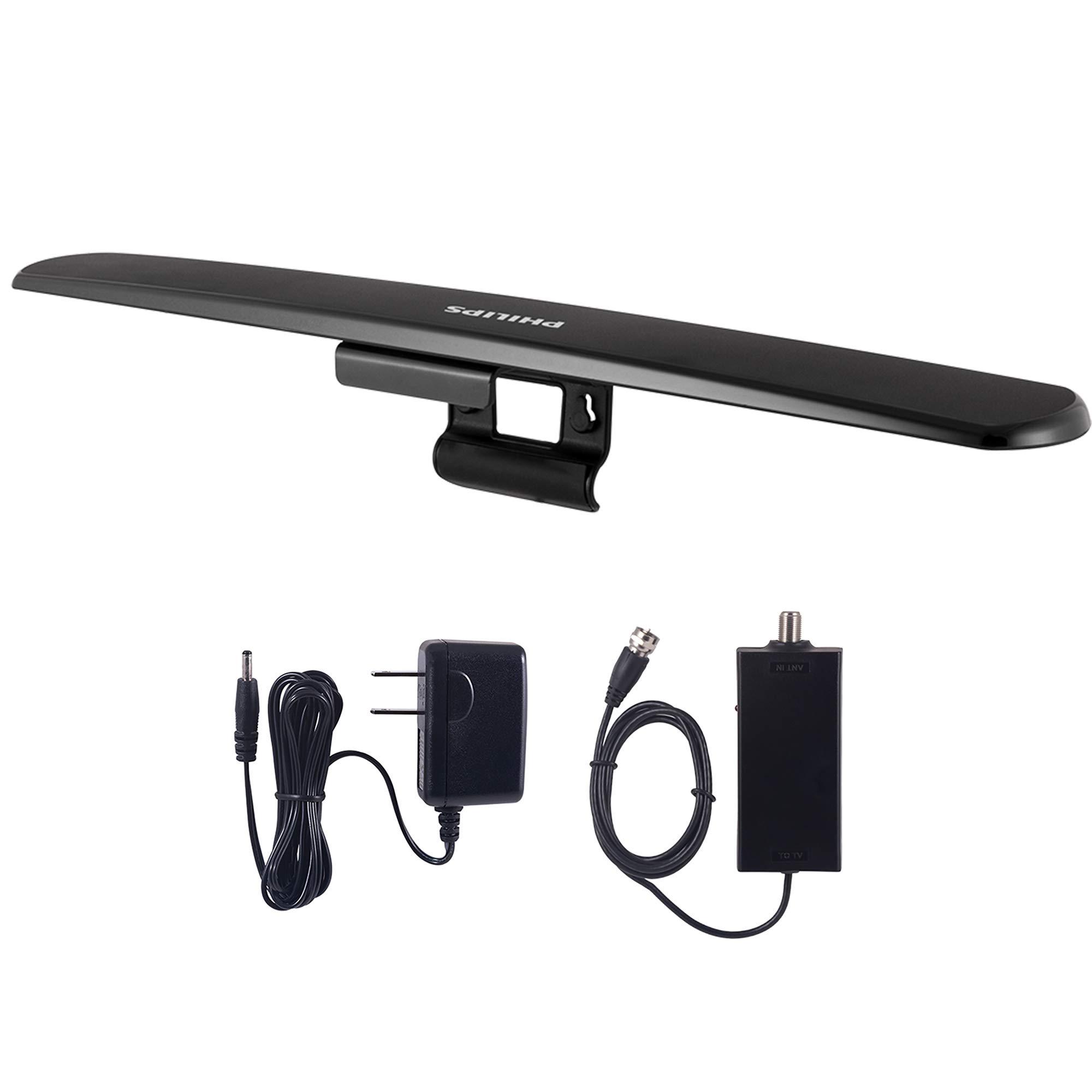 Take your TV viewing to new heights with the Philips Hover HD Amplified Antenna. Ditch expensive cable and continue viewing your favorite local shows in full 1080p high definition at no cost. Enhanced reception and a perfect signal make this 4K-ready antenna the ideal counterpart to streaming your favorite digital content. Engineered for exceptional performance, this indoor antenna lets you experience a wide range of HDTV, VHF and UHF channels up to 50 miles from the broadcast source. The integrated amplifier with TruAmp Technology boosts the signal to provide crystal-clear reception. This slim antenna fits most HDTVs and blends seamlessly into any home theater setup. Use the included bracket to sit the antenna securely on top of your flat-screen TV or mount it to a wall. If you prefer a tabletop location, simply remove the mounting bracket and lay the antenna flat on a nearby shelf or cabinet. Not a cord-cutter? HD antennas are a reliable complement to your cable or satellite subscription. When severe weather disrupts service, stay informed with a backup antenna for access to important local broadcasts. Maximize your HD viewing experience and enjoy free TV with the Philips Hover HD Amplified Antenna.