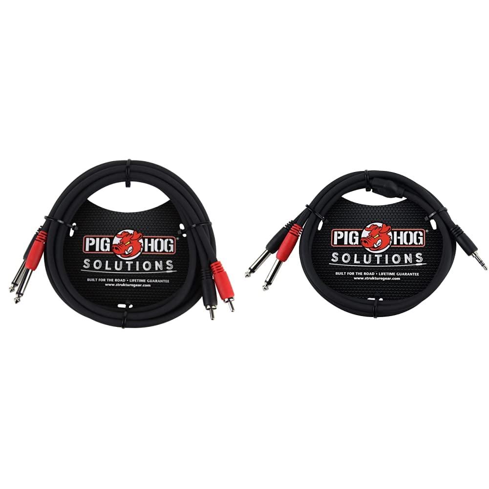 Pig Hog PD-R1403 RCA to 1/4" Mono Cable (3 Feet) & PB-S3403 3.5mm to Dual 1/4" Mono Stereo Breakout Cable (3 Feet)