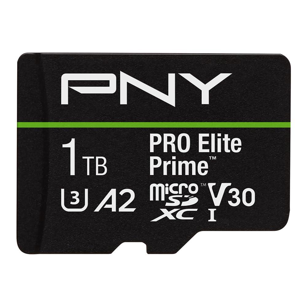 PNY PRO Elite Prime Class 10 U3 V30 A2 microSD Cards offer extreme performance for smartphones, tablets, drones, action cameras, surveillance cameras, gaming consoles, and more. With exceptional read speeds of up to 200MB/s and write speeds of up to 150MB/s when used with PNY Performance Prime Card Reader.,, Quickly capture high quality content, transfer, store and share media between devices at incredible speeds, particularly useful when editing footage. Featuring U3 technology and V30 Video Speed Class, the PRO Elite Prime microSD is ideal for HD photography and 4K Ultra HD videography at 4096x3072 format. Allowing users to capture high quality 4K video, HD photos, music, apps, and more. Rated A2 optimizing the PRO Elite Prime microSD for app performance; allowing users to run apps directly from the microSD card, delivering faster app launch and performance than ever before. Experience next level performance and high-capacity storage options of up to 1.5TB with PRO Elite Prime microSD cards!
