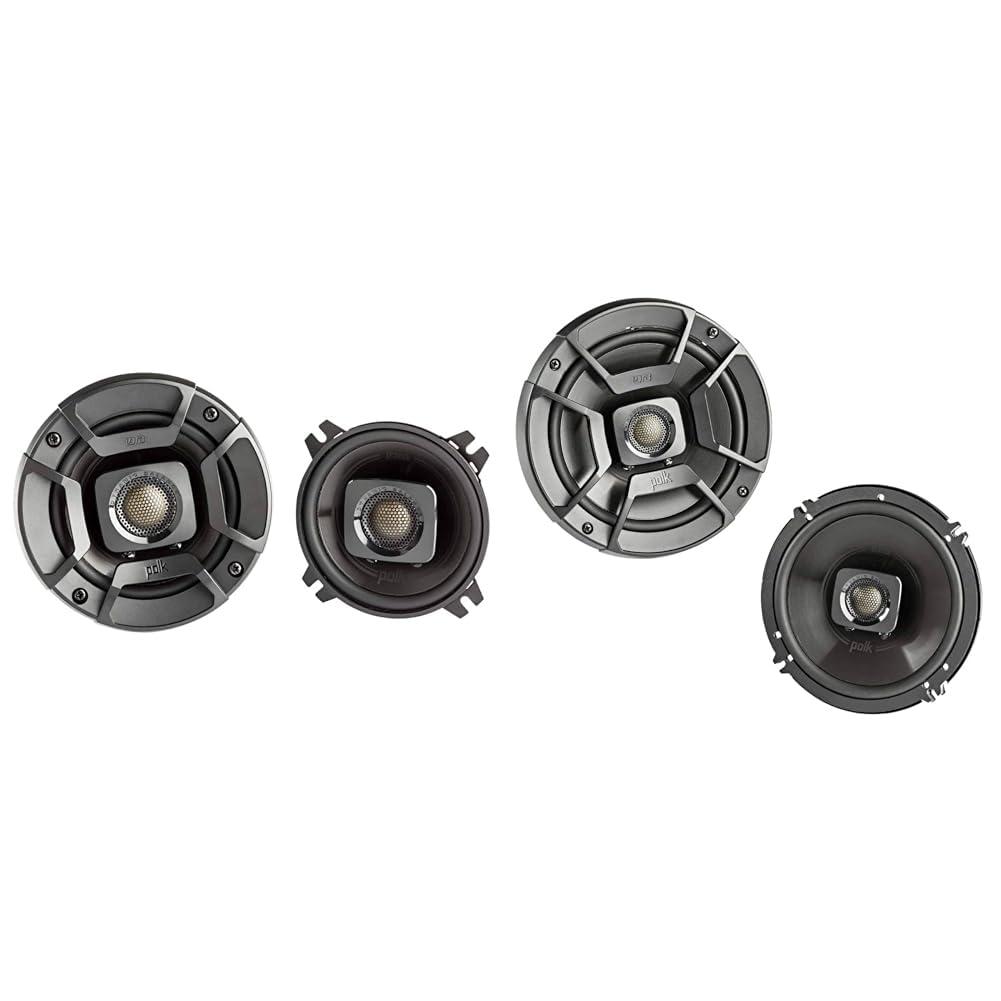 - Includes a pair of 4" Polk Audio DB402 coaxial speakers (135W peak power) and a pair of 6.5" Polk Audio DB652 coaxial speakers (300W peak power) to elevate your car audio system