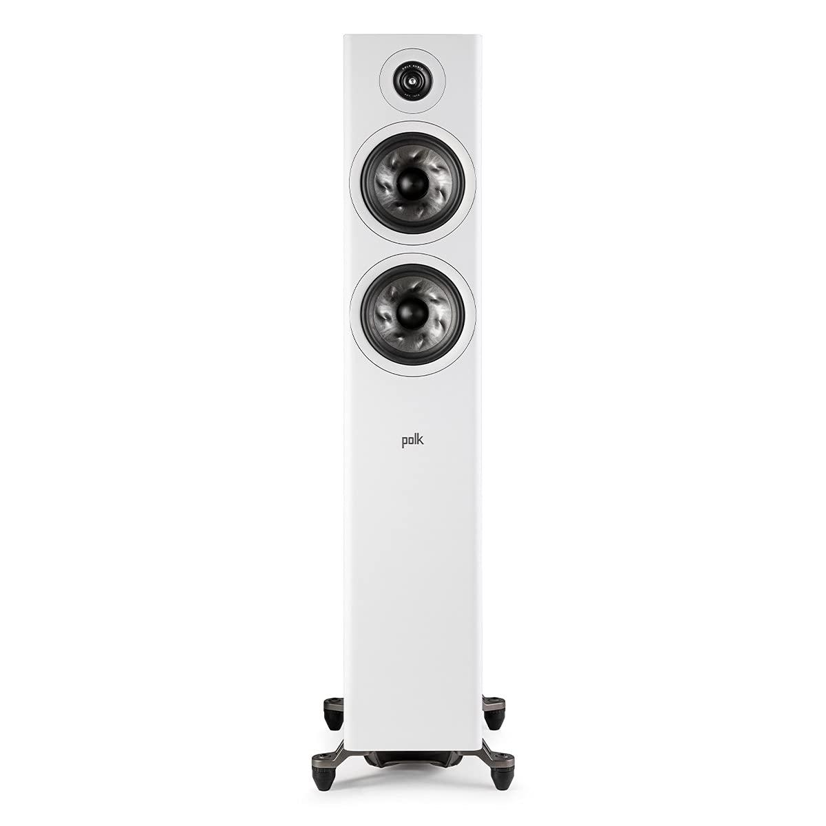 Polk Reserve R600 Powerful Floorstanding Speaker for Unmatchable Audio Performance. Polk's Reserve R600 Floorstanding Speaker is a high-performance tower loudspeaker that delivers ultra-clear and crisp highs, detailed midrange, and effortless bass. It features a 1" Pinnacle Ring Radiator Tweeter and dual 6.5" Turbine Cone Woofers with Hi-Res Audio Certification, Dolby Atmos, and IMAX Enhanced support to produce high-quality sound with pure detail. Whether you're listening to music, watching movies, or playing video games, the R600's bass reflex cabinet with a down-firing port and Polk's Patented Power Port 2.0 with X-Port Technology ensures distortion-free bass for an immersive audio experience. Its binding posts ensure an easy and efficient setup with a lossless connection. This powerful tower speaker comes with rubber feet for hardwood, vinyl, laminate, and tile floors, and spike feet for carpet floors. These adjustable feet allow speaker leveling according to your preference. Add another R600 tower speaker, two R200 bookshelf speakers, an R300 center channel, and three R350s & add an R900 height module for depth (all sold separately) to create a multichannel surround sound system. The R600 is compatible with the latest file formats like DSD, FLAC, WAV, ALAC, and MQA, so you can experience superior audio performance at home.