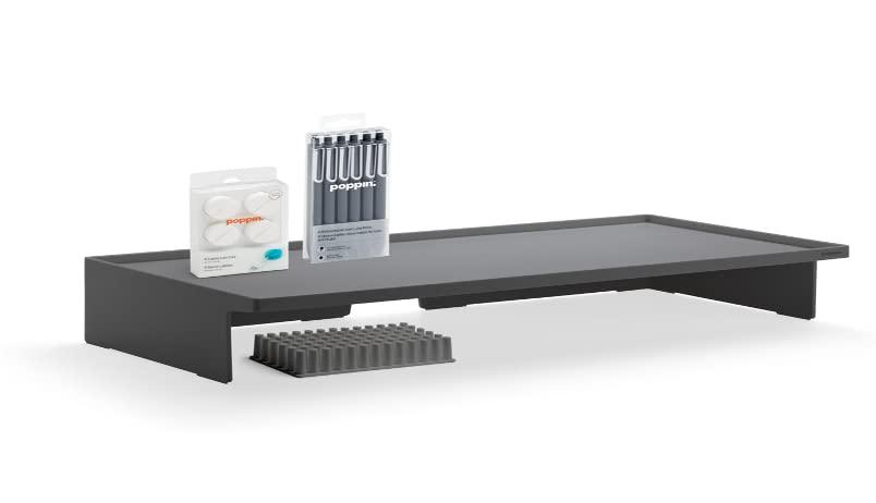 - SLEEK, STYLISH DESIGN: Take your desktop to new heights with sleek, stylish monitor risers designed by Poppin in NYC. Featuring a lacquer-like finish and simplistic design, you can always keep your desktop organized and your monitor free from clutter. Wipe with a damp cloth to clean.
