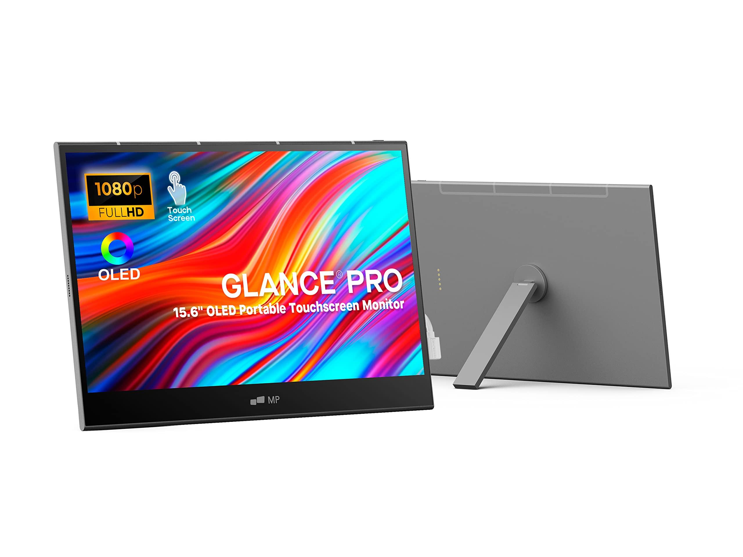 - Glance Pro OLED Portable Monitor: Glance pro 15.6" portable touchscreen monitor adopts OLED display technology , 100% DCI-P3 color gamut and 100000:1 contrast ratio. It makes excellent vivid color picture,which allows you to have best visual experience