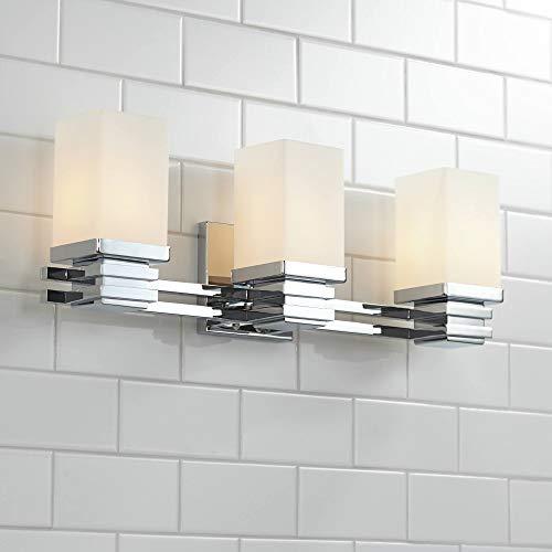 - Chrome finish bar and accents. Etched white opal glass shades.