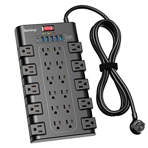 - 28-in-1 Versatile Power Strip FCC, RoHS safety certified, with the extension cord and flat plug certified by UL. Superdanny power strip surge protector has 22 grounded 3-prong outlets and 6 USB ports, providing power for all devices that you need to plug in at one location. Perfect for gaming or media set up, surround sound system, TV, phone, tablet, PC, laptop, gaming computers, lamps, and other devices simultaneously.