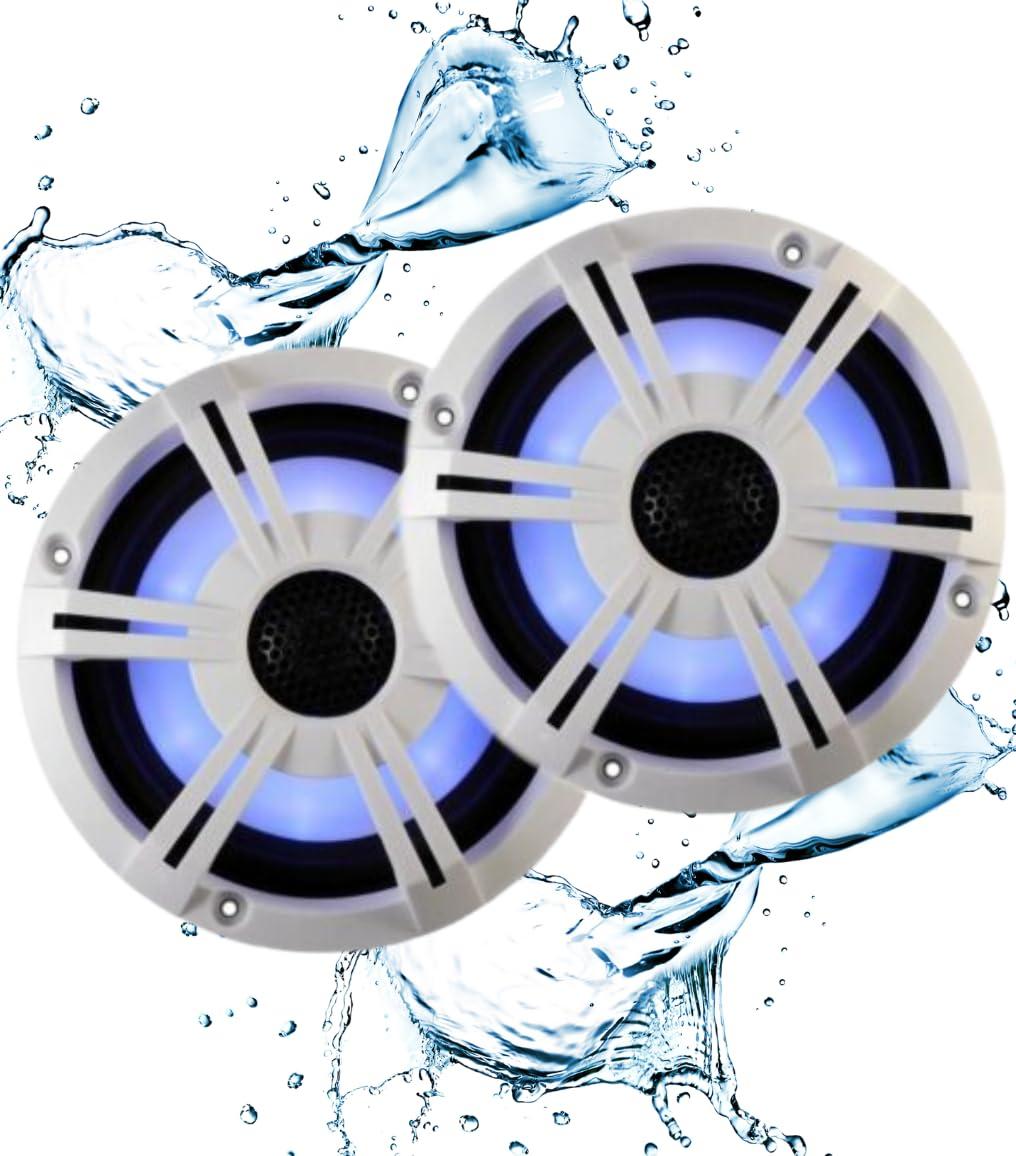 PQN Audio RV652BTWLD Coaxial Bluetooth Speakers - 6.5 Car Speakers and Boat Speakers with Integrated Amplifier, LED Lights, and Waterproof Design (2 Total Speakers) (White)