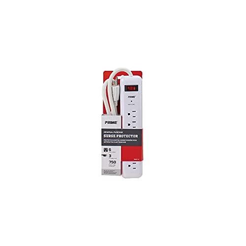 Description 6-Outlet 750 Joule Surge Protector w/3ft Cord Ideal for small household electronics Features: 6 outlets 750 Joules EMI/RFI filtering 3ft power cord Lighted on/off switch with built-in circuit breaker protects against overloads Protected indicator LED shows surge protection is functioning Indoor use only Specifications Color:White & Gray Length (ft):3 Gauge:14/3 Wire Type:SJT Plug Type:Grounded Connector:Grounded # of Outlets:6 Joule Rating:750 VPR:400 Usage:Indoor Watts:1875 Amps:15 Volts:125 Certifications: Package Specifications Product Packaging Type:Sleeve Unit Measurements (DxWxH):1.38 x 3.25 x 11.00 Unit Weight (lbs):0.70 UPC Code:0 54732 80752 9 Master Pack Info Quantity:12 Box Type:Bin-Box Measurements (DxWxH):12.43 x 12.03 x 6.65 Weight:9.8 lbs Cubes:0.58 I 2 of 5 Code:2 00 54732 80752 3 Manual & Warranty Download Manual Here Download Warranty Here